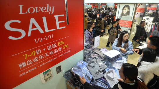 지난 2일부터 세일이 시작된 가운데 3일 오후 서울 중구 롯데백화점 본점에서 고객들이 세일 물품을 살펴보고 있다. 롯데, 현대, 신세계, AK 등 주요 백화점업체들은 오는 17일까지 2016년도 첫 세일을 진행한다.