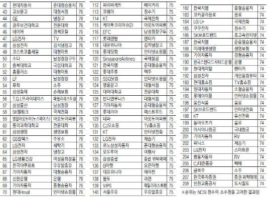 이는 1998년 NCSI 조사를 시작한 이래 역대 최고치다. 어려운 경제 여건 속에서도 국내 기업의 고객중심경영이 빛을 발하며 고객만족도 상승을 견인했다고 한국생산성본부는 평가했다.