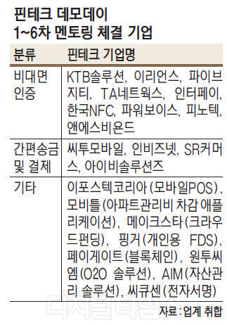 '핀테크 데모데이' 멘토링 체결 핀테크 기업은… 인증서 폐지 규제장벽 없어져 금융사 인증채널 개발 잰걸음