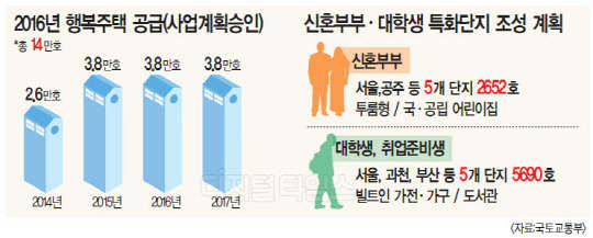 결혼한 지 5년 이내인 대학생은 '신혼부부'로서 행복주택 입주를 허용하고, 현재 거주허용기간이 6년인 신혼부부는 자녀 1명을 낳을 때마다 2년씩 기간을 연장해 최대 10년간 거주할 수 있도록 했다. 또 지방자치단체가 행복주택 사업을 시행하면 지자체가 우선공급 대상을 100% 선정할 수 있도록 했다.