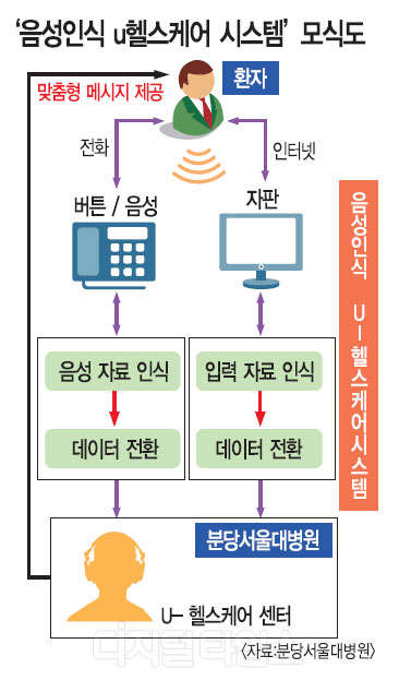 연구팀은 지난해 환자가 각 가정에서 측정한 혈당 데이터를 자동으로 병원으로 전송하고, 이를 의료진이 평가해 맞춤형 건강정보 서비스를 제공하는 시스템을 개발했다. 하지만 당뇨 환자가 많은 노인층이 모바일 기기와 인터넷을 잘 다루지 못해 시스템을 제대로 활용하지 못하는 문제가 있었다. 이에 노인들이 전화 거는 데는 익숙하다는 점에 착안해 국내 헬스케어 기업과 함께 혈당이나 활동량을 말로 하면 음성을 인식하는 음성인식 당뇨케어 시스템을 개발했다.