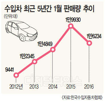 수입차 판매가 전년 동기보다 줄어든 것은 2011년 12월 이후 5년 만에 처음이다. 윤대성 한국수입자동차협회 전무는 "1월 수입차 시장은 개별소비세 인하 종료와 함께 일부 브랜드의 물량 부족 및 계절적 비수기 등으로 전년에 비해 감소했다"고 설명했다.
