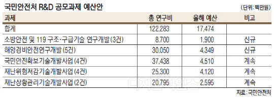 18개과제 174억7400만원 투입… 연구과제 우수성과 선정 재난안전기술 발표·R&D 설명회