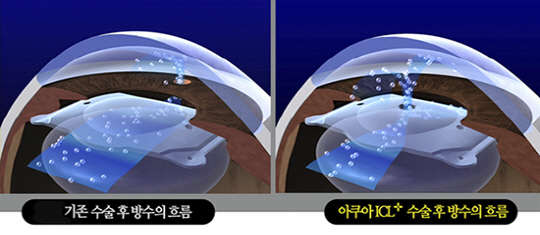 하지만 최근에는 이러한 홍채절개 과정 없이도 자체적인 방수 흐름 확보가 가능해진 '아쿠아ICL'이 개발되면서 편의성이 높아지면서 렌즈삽입술 대상자들에게 각광을 받고 있다.