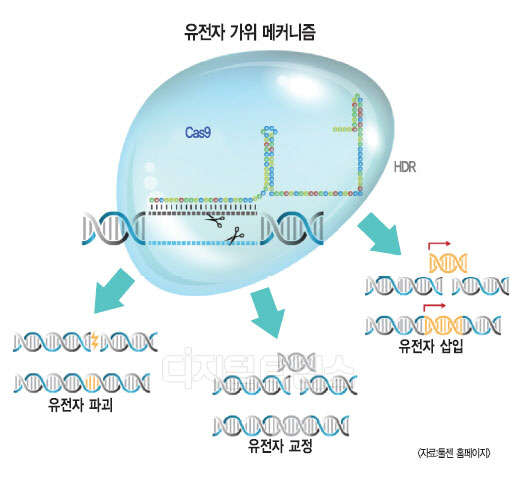 국내에서는 김진수 기초과학연구원(IBS) 유전체연구단장과 김동욱 연세대 의대 교수 공동연구팀이 지난해 7월 혈우병 유전자를 교정한 줄기세포를 쥐에 이식해 출혈 증상을 개선하는 데 성공했다. 이 기술은 5~10년 후면 임상시험을 거쳐 상용화될 전망이다. 유전자 가위 기술은 동물과 식물 유전체 교정에도 활용된다. 특히 외부 유전물질을 도입하지 않고 유전체를 고칠 수 있어 유전자변형과 차별된다. 툴젠은 중국 연변과학기술대와 제휴를 맺고 근육량을 20% 늘린 근육강화 돼지를 개발했다.