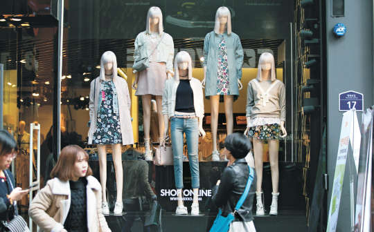 서울 낮기온이 영상 11도까지 오르면서 완연한 봄 날씨를 보인 14일 오후 서울 명동에 시민들이 가벼운 옷차림으로 쇼핑을 즐기고 있다.