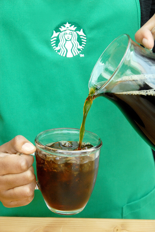 스타벅스의 콜드브루는 아프리카와 라틴아메리카 원두로 블렌딩한 전용 원두를 사용해 소량씩 14시간 동안 천천히 추출한 아이스 커피이다.