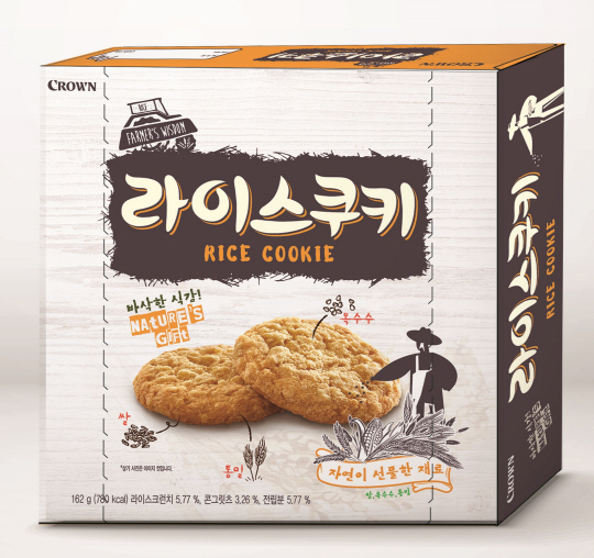 크라운제과는 국내산 쌀 등 곡물을 사용한 '라이스쿠키'를 출시했다.
