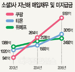 소셜커머스 3사는 지난해 총 8300억원(금융감독원 전자공시 기준)이 넘는 영업손실을 냈다. 이는 전년보다 4배 이상 늘어난 수치다. 3사 총 매출의 절반 가까운 영업손실을 입은 것. 매출로는 상품 원가, 판매관리비 등 운영 자금을 감당할 수 없는 구조인데도 회사가 운영되는 것은 판매자들에게 정산해야 할 현금 덕분(?)이다.