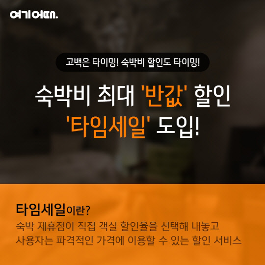 이 서비스를 통해 중소형호텔 제휴점은 스스로 지정한 시간대의 할인가격을 고객에게 자유롭게 제공할 수 있다. '여기어때'는 최근 '타임세일'을 시범 운영한 결과, 기존가격 대비 최대 50% 저렴한 '깜짝' 할인 객실이 등장하기도 했다고 밝혔다.