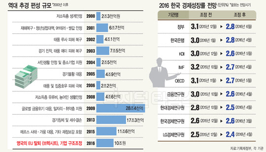 지난해에도 메르스(중동호흡기증후군)란 예상치 못한 변수가 돌출하자 정부는 11조6000억원 규모의 추경 카드를 꺼낸 바 있다.