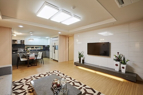 먼저 59㎡형에는 부부욕실, 샤워부스를 설치했고 전용면적 대비 넓은 공간의 드레스룸이 배치된다. 또 확장 시 아일랜드 식탁을 고려한 주방배치가 계획돼 있으며 A타입은 '맘스데스크'를 설치할 예정이다. 전용면적대비 약 50%의 발코니를 설치와 넓은 현관을 통해 수납을 극대화했다.