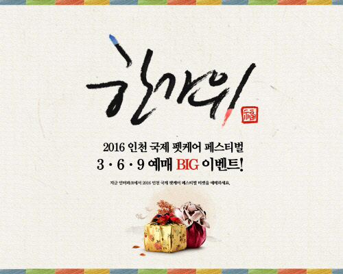 한편 '2016 인천 국제 펫케어페스티벌'은 웰빙을 주제로 반려동물을 대하는 올바른 문화 정착을 위해 마련된 행사로, 다음 달 1일부터 3일까지 인천 송도 컨벤시아에서 진행된다.