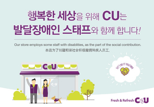 BGF리테일은 사회공헌 프로그램 'CU투게더'를 통해 전국 1만여 개 CU 매장을 활용해 일할 의지와 역량이 있는 발달 장애인을 직원으로 채용하고 있다.