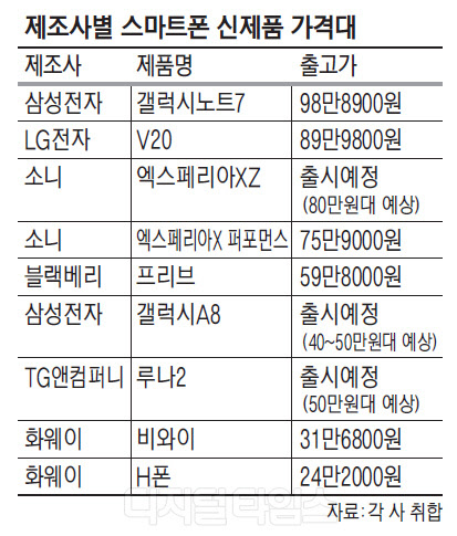 삼성전자 '갤럭시노트7'의 판매 재개와 LG전자 'V20' 출시를 계기로 잠잠했던 하반기 스마트폰 시장이 다시 가열되고 있다. 프리미엄 폰을 비롯해 중저가 보급형까지 신제품 출시가 이어지면서 소비자 선택의 폭이 넓어지고 있다.