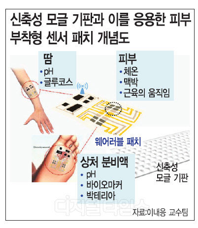 이 교수는 "신체의 다양한 변수를 동시에 모니터링하는 이물감 없는 밴드 또는 패치 제품의 개발과 사업화가 가능할 수 있을 것"이라며 "피부 부착형 센서 패치 외에도 신축성 디스플레이, 웨어러블 전자기기 등에 응용 가능하다"고 말했다.