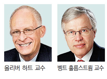 계약 이론의 대가인 올리버 하트 하버드대 교수와 벵트 홀름스트룀 매사추세츠공과대학(MIT) 교수가 올해 노벨경제학상 수상자로 선정됐다.