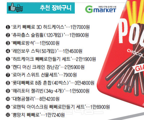빼빼로데이가 일주일 앞으로 다가왔다. 매년 빼빼로데이를 앞두고 다양한 콘셉트의 상품이 봇물처럼 쏟아진다. 어떤 상품을 사는 게 경제적인지, 내가 선물하려는 상대방에게 적합한 상품은 무엇인지 선택하기가 쉽지 않다. 연인에게는 감동을 줄 수 있도록 정성스럽게 만든 빼빼로를, 직장 동료에게는 함께 나눠 먹으면서 팀워크를 다질 수 있게 디자인한 빼빼로를, 친구들에게는 재미와 웃음을 줄 수 있게 포장한 빼빼로를 선물하는 게 좋다. G마켓 MD가 추천하는 연인, 직장 동료, 친구들을 위한 콘셉트별 빼빼로와 사탕을 소개한다.
