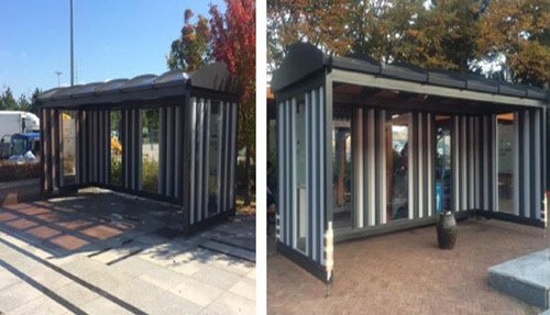 천정이 있는 흡연부스를 설치하여, 우천시에도 안정적으로 이용이 가능하며, 부스 내에 의자테이블 세트 2조와 쓰레기통도 설치하여 이용고객의 편의성을 높였다.