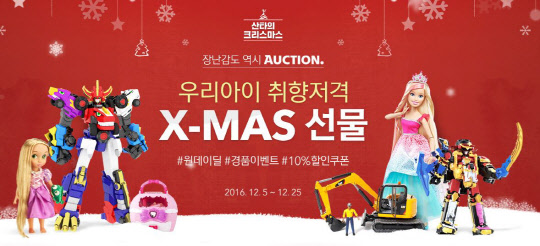 오픈마켓 옥션은 오는 25일까지 '우리아이 취향저격 X-MAS 선물' 기획전을 진행한다고 5일 밝혔다.