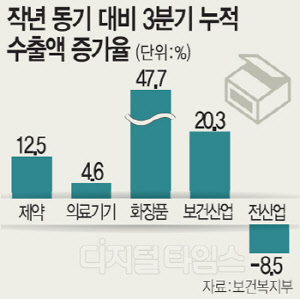 3분기 보건산업 20.3% 증가 화장품 47.7%·제약 12.5%↑ 자동차 등 주력산업 위기속 새 성장동력 가능성 확인