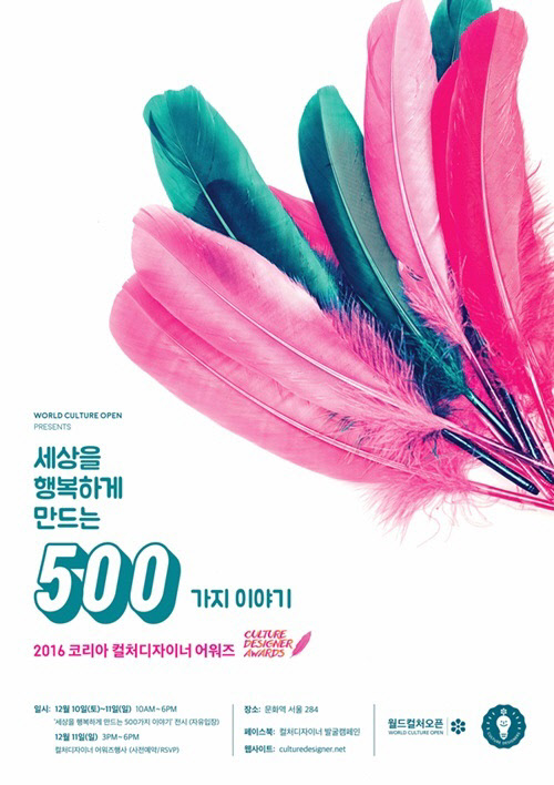 '월드컬처오픈'(이하 WCO)에서 '세상을 아름답게 만드는 500가지 이야기'라는 주제로 기획한 이번 행사는 컬처디자이너 500인과 그들의 작품, WCO의 문화 활동들을 소개하는 자리로 꾸며진다.
