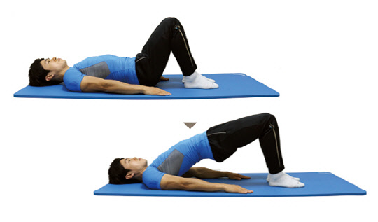 대표적인 코어 운동으로는 '브릿지'가 있다. 먼저 천장을 보고 반듯하게 누운 다음 무릎을 세운 자세에서 엉덩이를 천천히 들어 올렸다가 내리는 것이다. 단 빠르게 반복하기보다 엉덩이를 들어 올린 상태에서 일정 시간 버티는 것이 중요하며 엉덩이를 내릴 때는 바닥에 완전히 밀착되지 않도록 해야 한다.