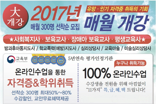 평생교육사 과정을 준비하는 수강생에게는 교육비 할인과 민간자격증 과정 무료 수강 등 풍성한 혜택을 제공한다. 또한 평생교육사 개강을 알리는 입소문 이벤트도 진행 중이다.