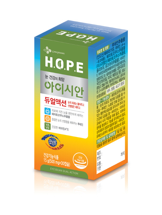 CJ제일제당의 눈 건강기능식품 전문 브랜드 'H.O.P.E 아이시안'이 '아이시안 듀얼액션'(사진)을 7일 출시했다.