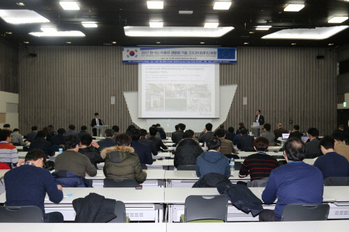 지난 16일 오전 9시 50분부터 오후 5시까지 경기도 일산 킨텍스 제2전시장 3층 회의실 303호에서 열린 '2017 한-EU 자동차 경량화 기술 고도화(高度化) 포럼'은 자동차 경량화 기술 산업전 전시회 부대행사로, 마이스포럼이 주최하고 울산과학기술원(UNIST) 경량 복합재 고속성형 기술센터가 주관, UNIST·산업통상자원부·울산광역시가 후원했다.