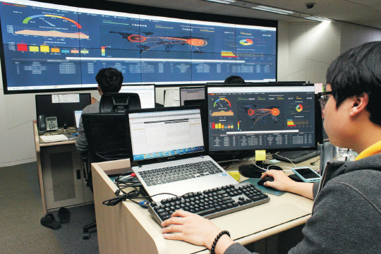 사진은 SK인포섹 통합보안관제센터 근무 모습.