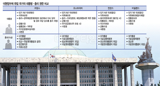 '제왕적 대통령' 견제… 내각서 총리지명·입법 주도 대통령제·의원내각제 혼합 형태 의회, 내각불신임으로 권한 강화 총리는 '각료 임명 제청권' 가져 국가 권력구조 균형이 핵심