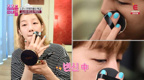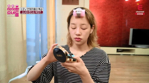 지난 27일에 방송된 E채널 홈 푸드예능 버라이어티 '먹!킷리스트, 식식한소녀들'에서는 오프닝 면제를 받은 출연자들의 꽃단장 장면이 전파를 탔다. 특히, 무결점 피부에 쿠션 파운데이션 제품을 이용하여 간단하지만 생기있는 피부를 연출하여 눈길을 끌었다.