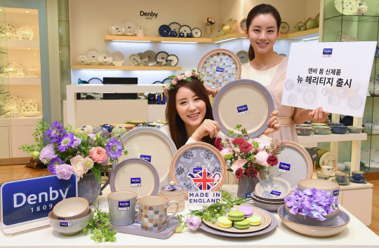 영국 프리미엄 테이블 웨어 덴비가 '뉴 헤리티지' 라인을 20일 선보였다. 20일 서울 소공동 롯데백화점 본점 덴비 매장에서 모델들이 덴비의 '뉴 헤리티지' 라인을 선보이고 있다.