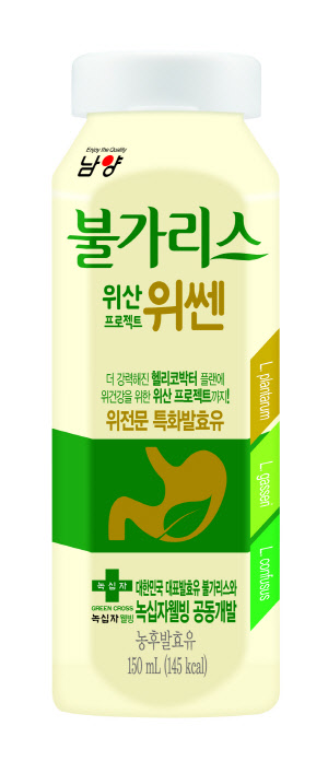 남양유업이 녹십자웰빙과 공동 개발한 위 전문 특화발효유 '위쎈'(사진)을 27일 출시했다.