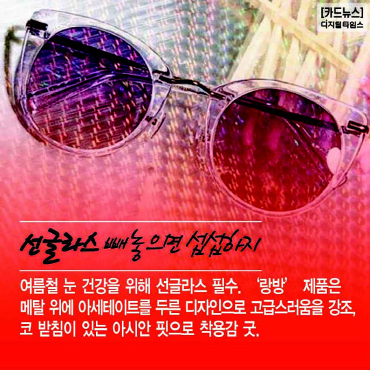 여름철 눈 건강을 위해 선글라스 필수. '랑방'제품은 메탈 위에 아세테이트를 두른 디자인으로 고급스러움을 강조, 코 받침이 있는 아시안 핏으로 착용감 굿.