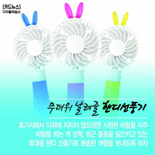 휴가지에서 더위에 지치지 않으려면 시원한 바람을 자주 바람을 쐬는 게 상책. 최근 돌풍을 일으키고 있는 휴대용 핸디 선풍기로 뽀송한 여행을 보내도록 하자