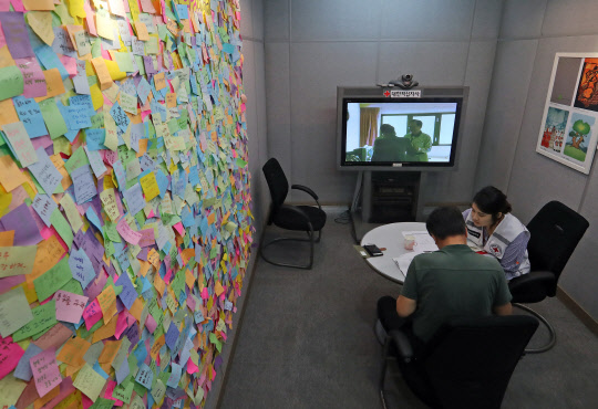 17일 오후 서울 중구 대한적십자사 이산가족 화상상봉장에서 한 이산가족 상봉 신청자가 돌아가신 모친의 유언을 받들어 원적지 등 정보를 수정하고 있다. 대한적십자사는 10월 4일 추석을 계기로 한 이산가족 상봉행사를 논의하기 위한 적십자회담 개최를 북한에 공식 제의했다.