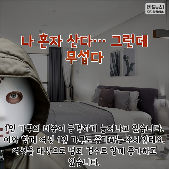 1인 가구의 비중이 급격하게 늘어나고 있습니다. 이와 함께 여성 1인 가구도 증가하는 추세인데요. 여성을 대상으로 범죄 건수도 함께 증가하고 있습니다.