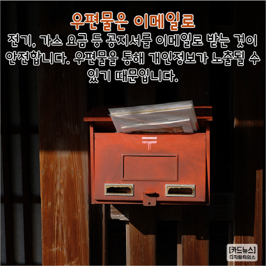 전기, 가스 요금 등 공지서를 이메일로 받는 것이 안전합니다. 우편물을 통해 개인정보가 노출될 수 있기 때문입니다.