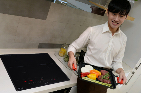 LG전자는 사용 편의성을 강화한 '디오스 인덕션 전기레인지 와이드존(모델명 BEF3G)'을 출시했다고 25일 밝혔다. 신제품의 가장 큰 특징은 '와이드존'으로 사용자가 평상시 2개의 화구를 각각 따로 사용하다가, 식재료의 양이 많거나 부피가 큰 경우에는 2개의 화구를 합쳐 대형 화구처럼 사용할 수 있다는 점이다. LG전자 모델이 디오스 인덕션 전기레인지 와이드존을 소개하고 있다.