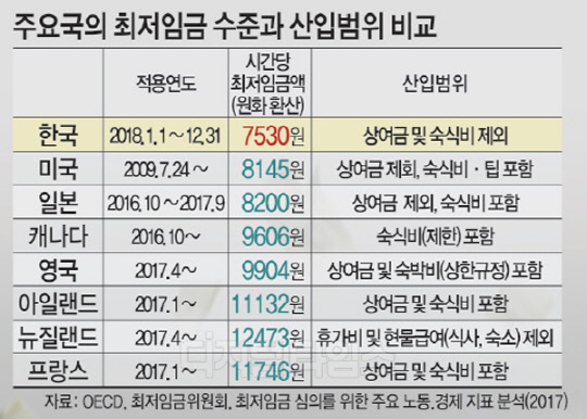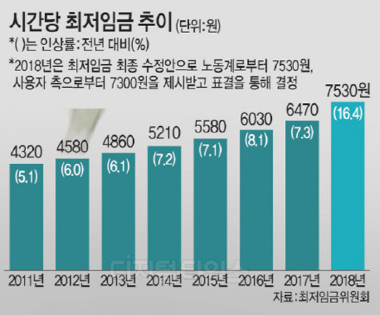 '분수경제' 효과 소득주도 성장 기대 속 고용감소 우려 시간급 '7530원' 역대 세번째로 높은 인상률 내년 월 환산액 약 157만원… 22만원↑ 효과 근로자 생계개선·임금불평등 상당 완화될 듯 전반적인 임금상승 가능성에 기업경영 '부담' 장기적 관점서 부작용 최소화 대책 마련해야