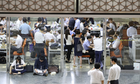 2016 회계연도 결산 국회가 시작된 21일 오후 서울 여의도 국회 각 상임위원회 회의장 앞에서 공무원들이 관련 자료 준비 등을 위해 분주하게 움직이고 있다.