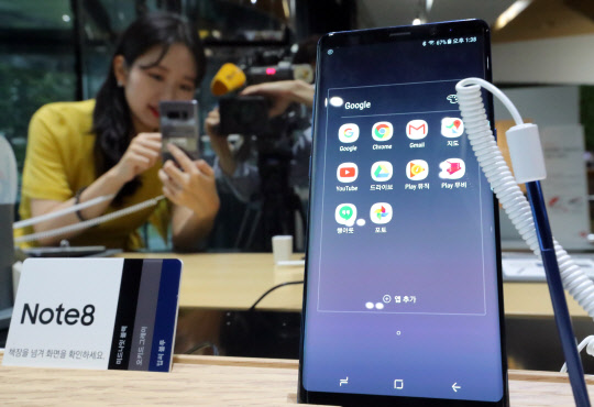 7일 예약판매에 돌입한 삼성전자의 하반기 전략 스마트폰 갤럭시노트8의 공시 지원금이 최고 26만5천원으로 책정됐다.