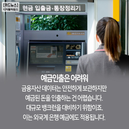 금융자산 데이터는 안전하게 보관하지만 예금된 돈을 인출하는 건 어렵습니다.