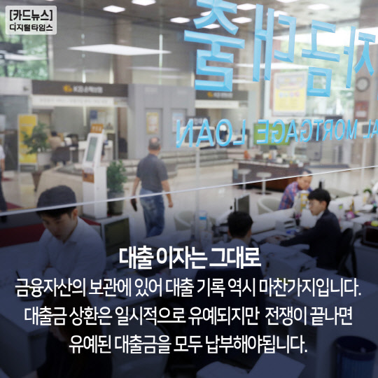 대출금 상환은 일시적으로 유예되지만 전쟁이 끝나면 유예된 대출금을 모두 납부해야됩니다.