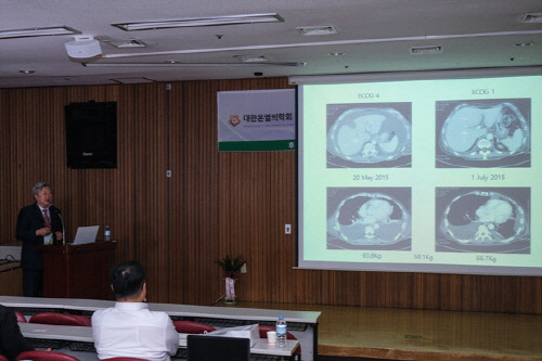 이날 대전대학교 유화승 교수의 강연에서는 SCIE급 국제학술지 Integrative Cancer Therapies 게재된 논문을 발표해 이목을 끌었다. 해당 논문은 식품의약품안전처로부터 의료기기로 허가 받은 고주파온열암치료기 리미션1℃(REMISSION 1℃)와 항암치료를 병용한 사례로써 온열치료와 면역치료를 통하여 수술 불가능한 담관암 환자를 대상으로 치료하여 호전된 사례에 관한 논문이다.