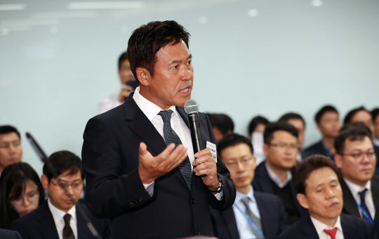 박정호 SK텔레콤 사장이 12일 오후 경기도 과천 정부과천청사 과학기술정보통신부청사에서 열린 과학기술정보방송통신위원회의 국정감사에서 증인으로 나와 국감 위원들의 질의에 답하고 있다. 박 사장은 이날 증인으로 채택된 CEO 중 유일하게 출석했다. 황창규 KT회장과 권영수 LG유플러스 부회장은 해외출장을 이유로 출석하지 않았다.