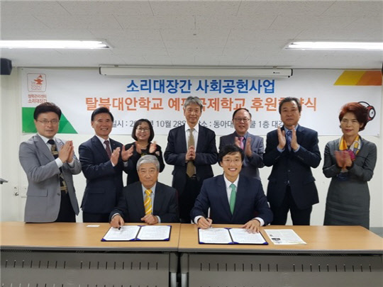 소리대장간은 28일 오후 3시 동아대 부만 캠퍼스에서 진행된 예평국제학교 개교기념 축하 음악회에서 후원금 전달식을 갖고, 탈북 청소년들의 안정적인 성장을 지원하기로 했다.