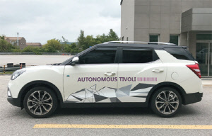 티볼리 에어 자율주행차(사진)는 차선 유지 및 변경, 차간 거리 및 속도 유지 기능이 탑재됐다. 또 차선 변경시 운전자 경고 알림 및 차선 변경 정지 기술이 적용돼 안전성을 강화했다.